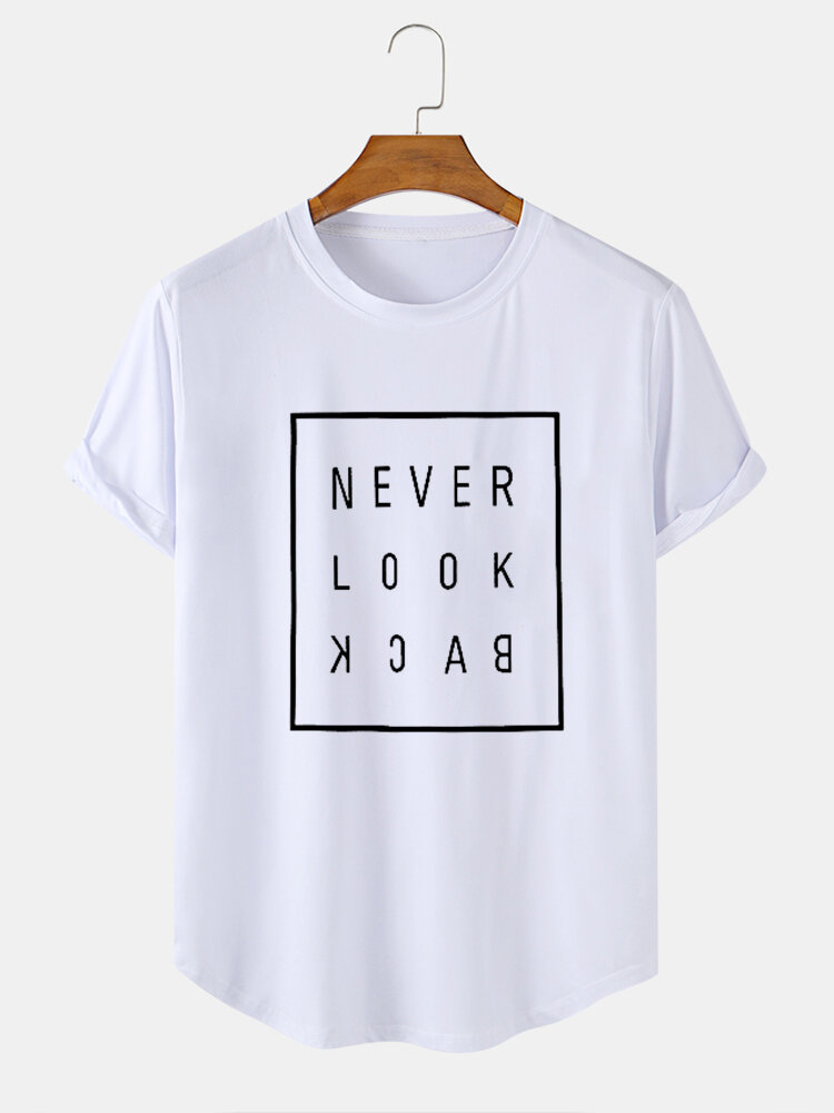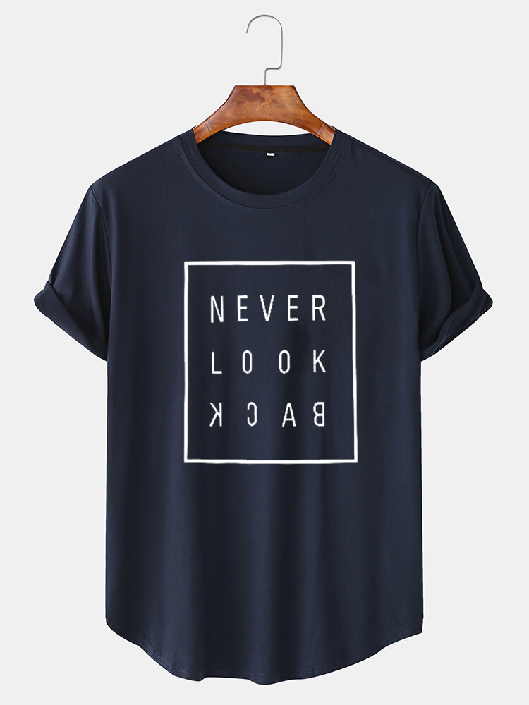 Mens Cotton Slogan Print Curved Hem Casual T-Shirts – Black S