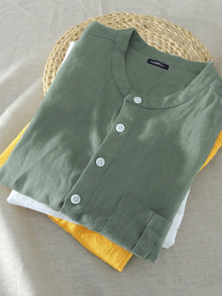 Brand:INCERUNDecoration:Pocket,ButtonFit Type:Loose FitMaterial:CottonNeckline:Stand CollarPattern Type:SolidScene:Leisure,CasualSeason:Spring,SummerSize:XXXL,XXL,L,S,XL,XXXXL,XXXXXL,MSleeve:Short SleeveStyle:CasualThickness:Regular