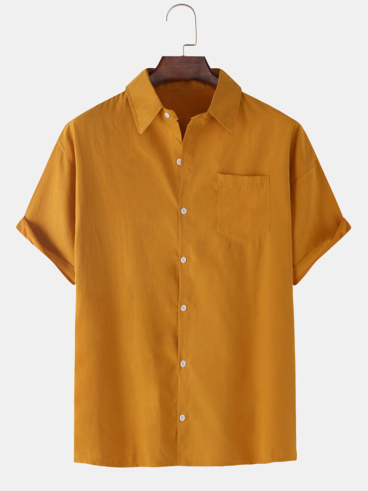 Mens Cotton Solid Turn Down Collar Short Sleeve Shirts – Orange 3XL