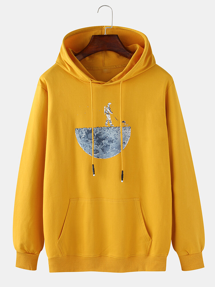 Mens Cotton Space Astronaut Printed Casual Drawstring Hoodies With Kangaroo Pocket – Black S