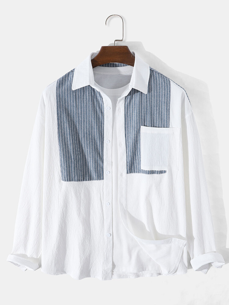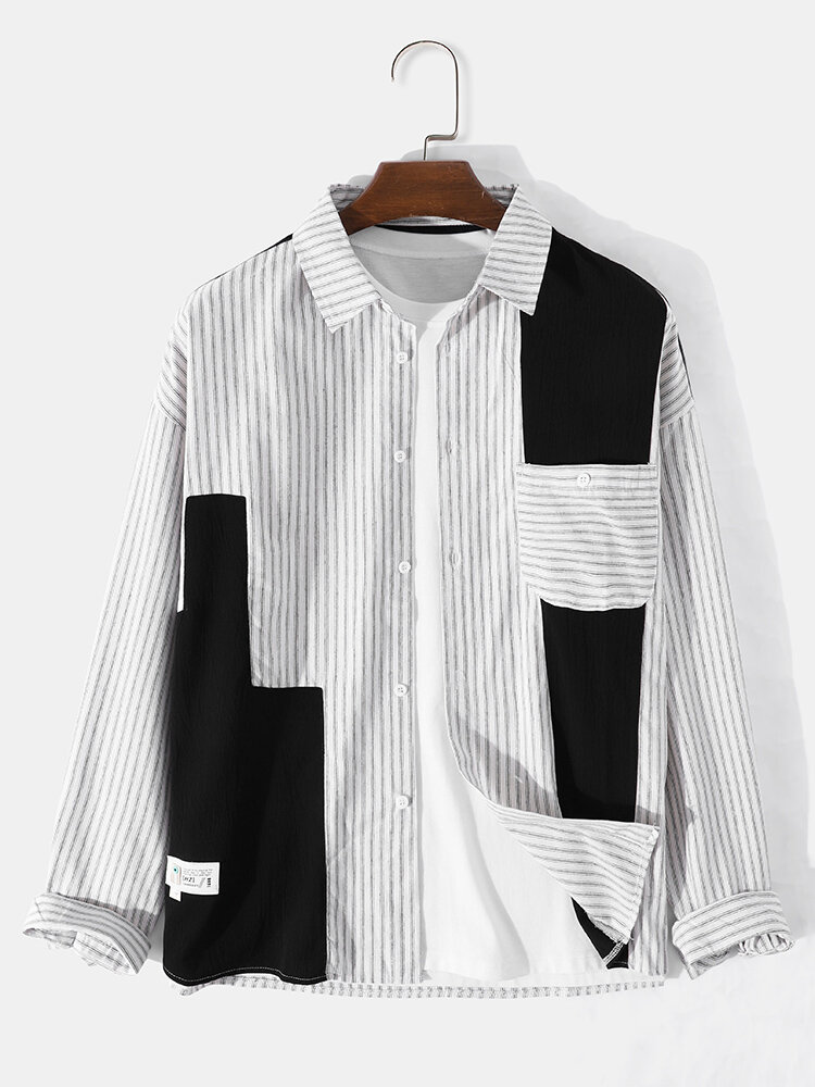 Description:Decoration:SplicingFit Type:Regular FitMaterial:CottonNeckline:LapelPattern Type:Striped,PatchworkScene:Leisure,Home,CasualSeason:Spring,Autumn,WinterSleeve:Long SleeveStyle:CasualThickness:Regular