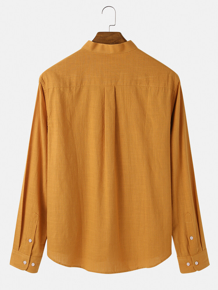 Decoration:ButtonFit Type:Regular FitMaterial:CottonNeckline:Stand CollarPattern Type:SolidScene:Leisure,Home,CasualSeason:Spring,AutumnSize:XXL,L,XL,S,MSleeve:Long SleeveStyle:Vintage,CasualThickness:Regular