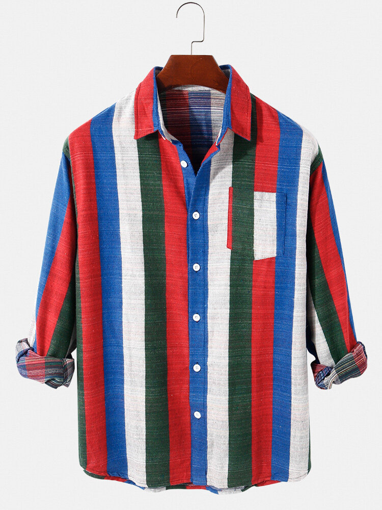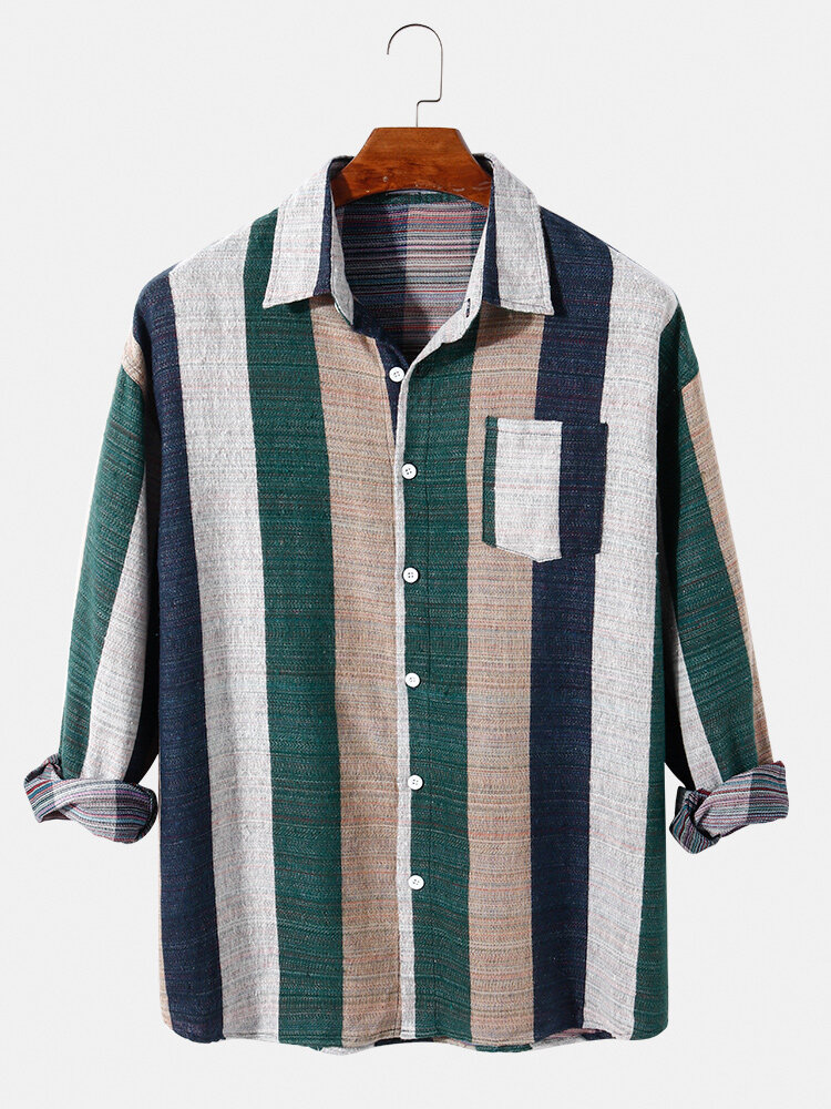 Description:Decoration:Pocket,ButtonFit Type:Regular FitMaterial:Other,CottonNeckline:LapelPattern Type:StripedScene:Leisure,CasualSeason:Spring,AutumnSize:XXL,L,XLSleeve:Long SleeveStyle:Casual