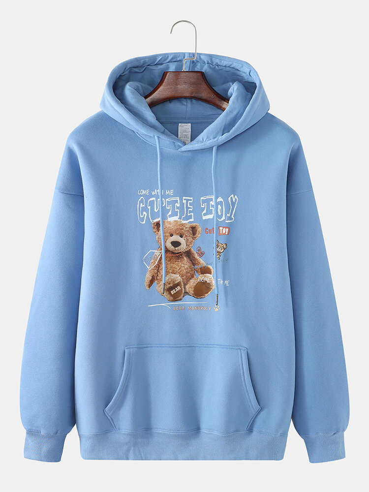 Mens Cute Bear Print Plus Velvet Thick Casual Pullover Hoodie – Purple L