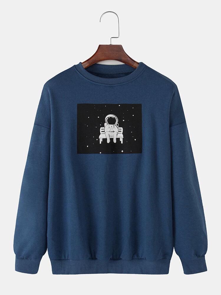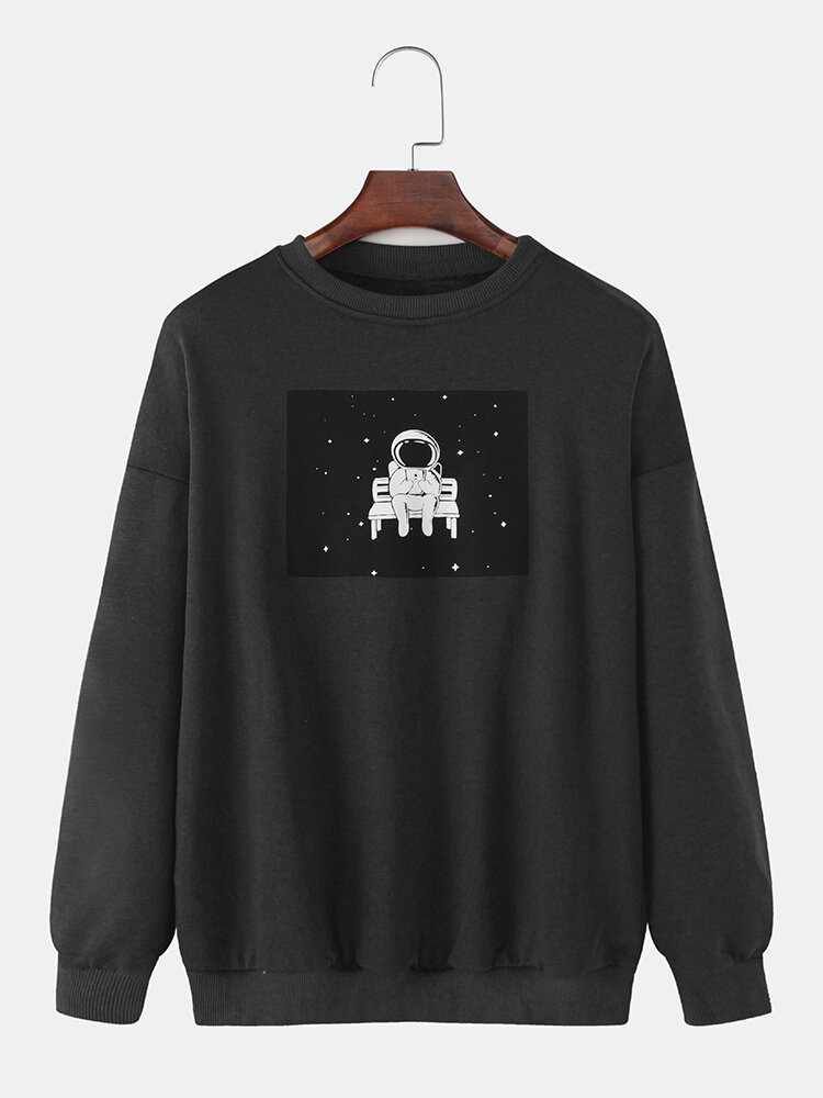 Mens Cute Cartoon Astronaut Print Long Sleeve Drop Shoulder Sweatshirts – Apricot XL