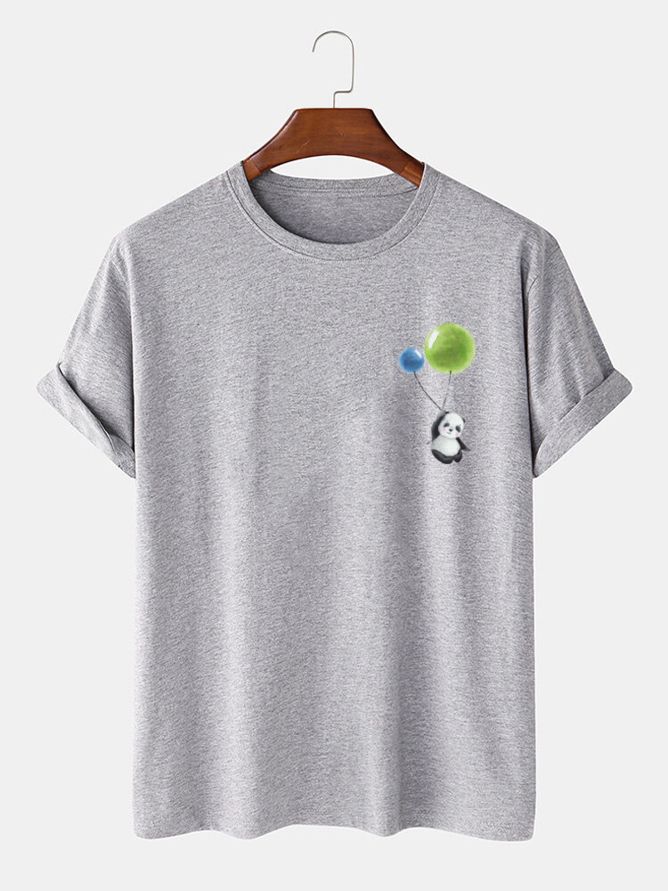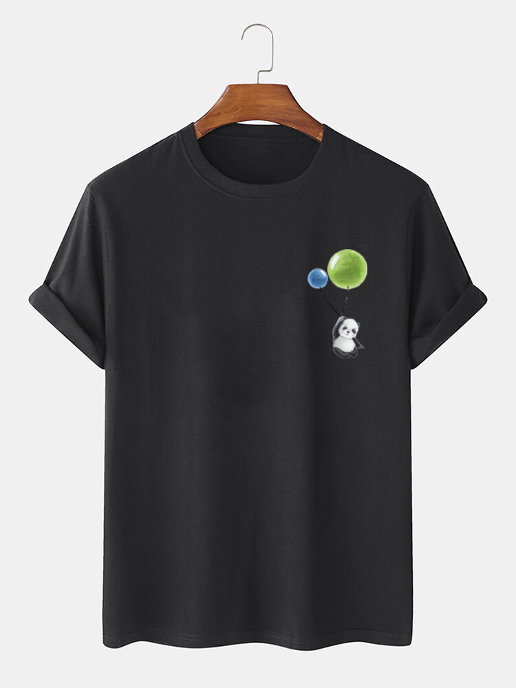 Mens Cute Cartoon Panda Printed 00% Cotton Short Sleeve T-Shirts – Black S