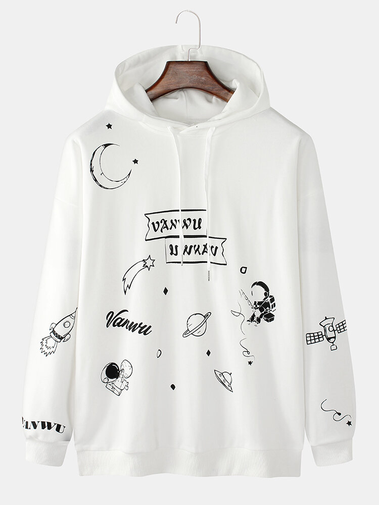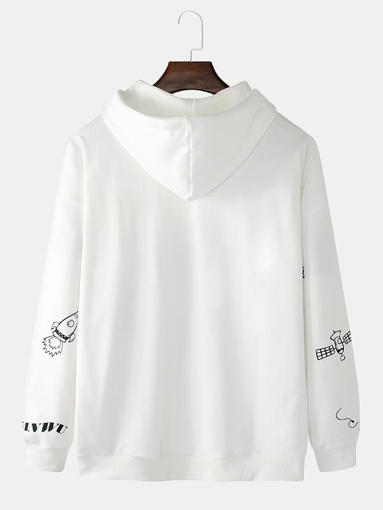 Mens Cute Cartoon Print Long Sleeve Casual Drawstring Hoodies – Black L