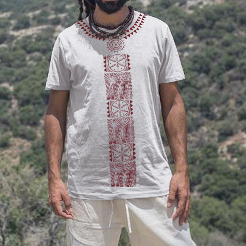 Mens Dashiki African Ethnic Print Shirt Hippie Bohemian Vintage Baggy Blouse Tee – S White