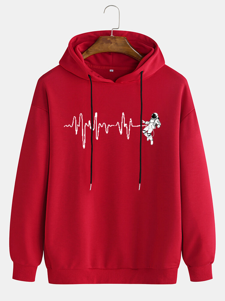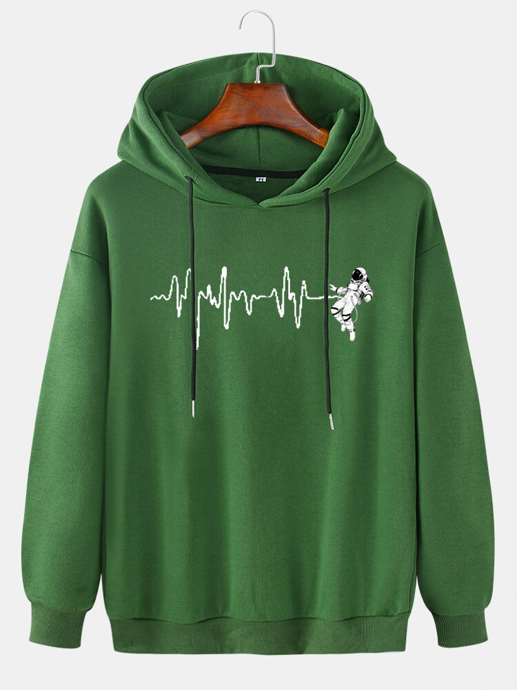 Mens Design Astronaut Print Drop Shoulder Hoodies – Yellow S