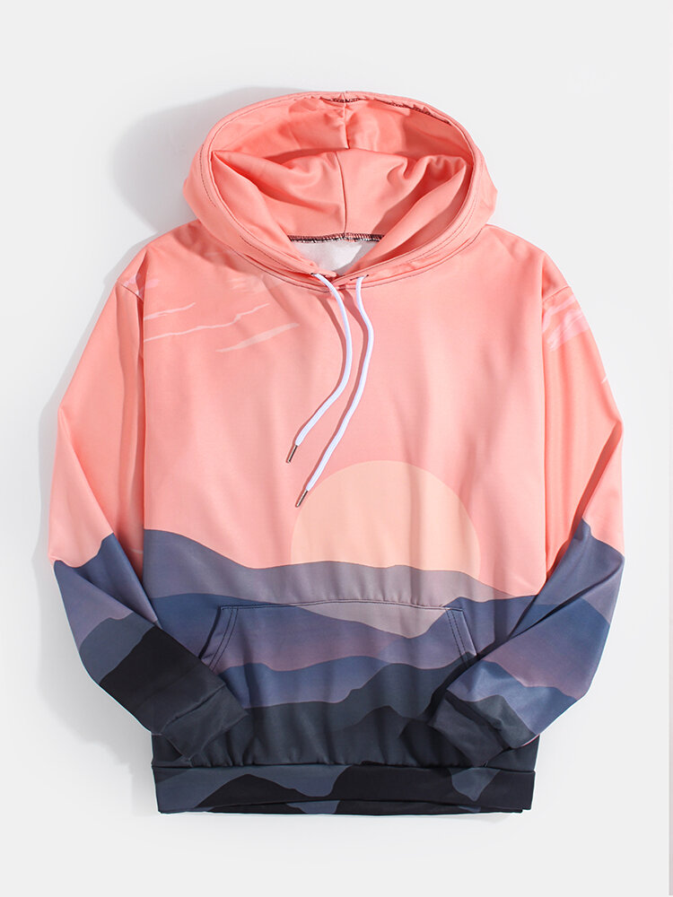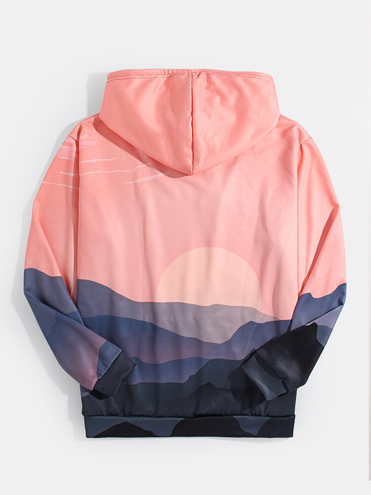 Mens Design Landscape Print Pouch Pocket Pink Hoodies – Pink L