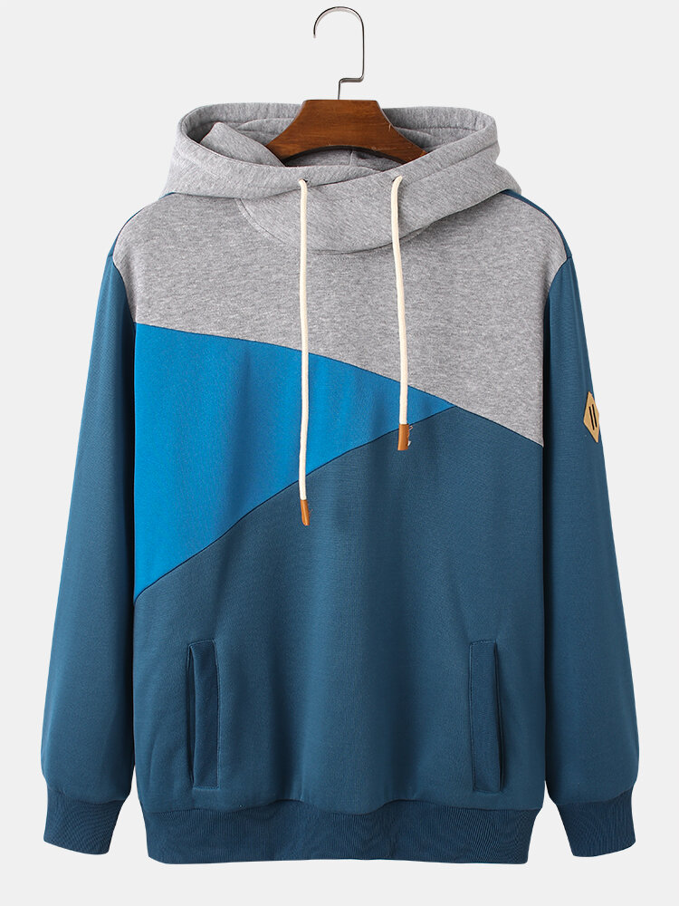 Mens Design Patchwork Solid Color Side Pocket Long Sleeve Hoodies – Green S