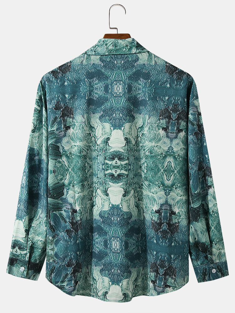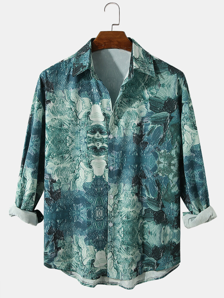 Mens Design Print Gradient Green Long Sleeve Casual Shirts – Green 3XL