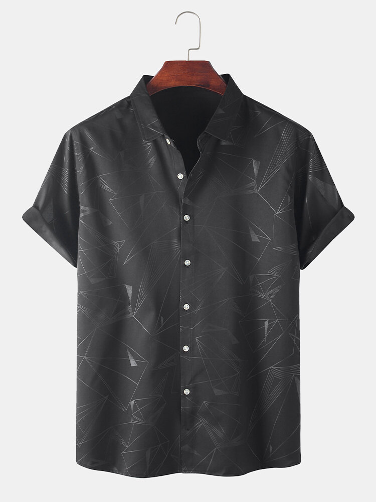Item Type:ShirtPattern Type:PrintGender: MenFit Type: FitStyle: Casual,FashionThickness: RegularCollar: Turn Down CollarSeason: SummerDecorations: ButtonMaterial:PolyesterSleeve Length: Short Sleeve Color: Navy,Black,WhiteCuff Type: Straight SleevesOccasion: Leisure,Home,Daylife