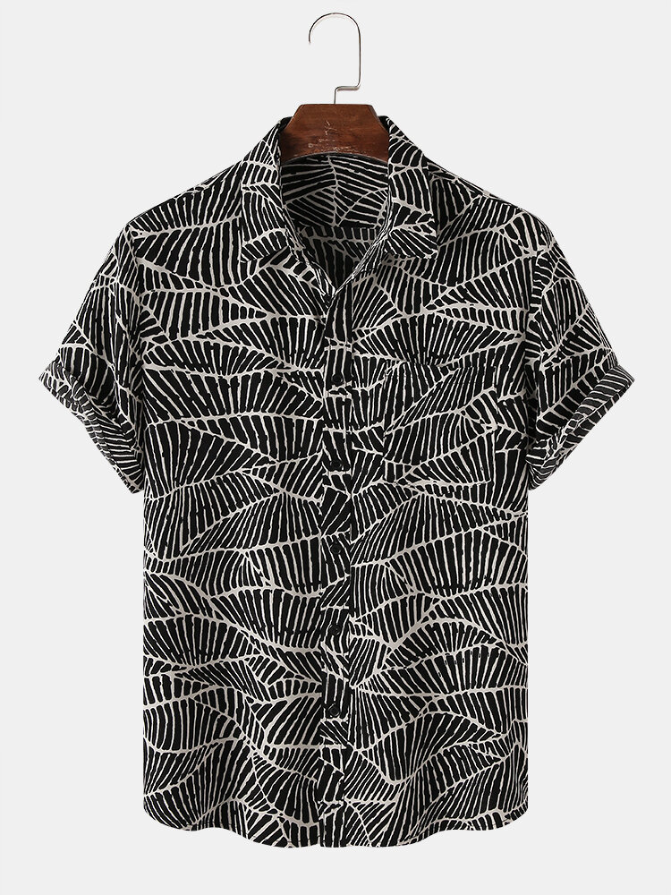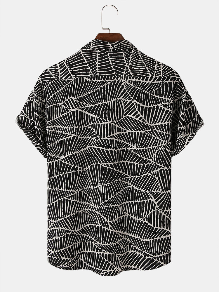 Mens Designer Plants Leaves Lapel Short Sleeve Casual Shirt – Black S