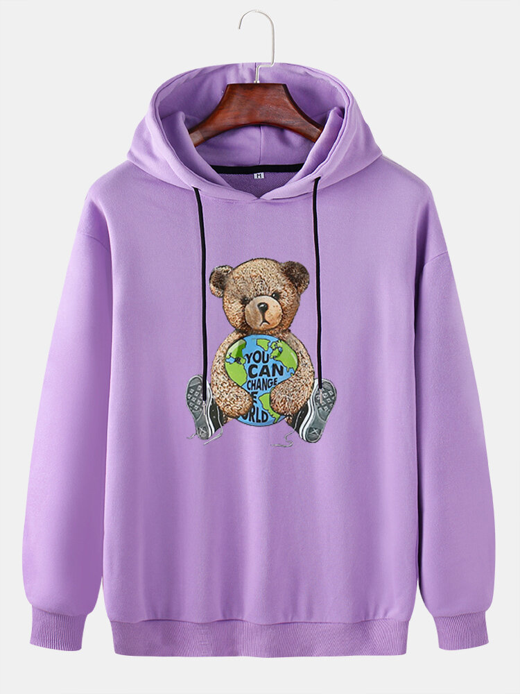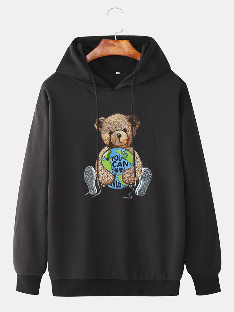 Mens Doll Bear Print Long Sleeve Cute Hoodies – White S