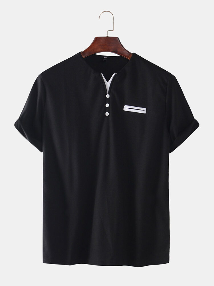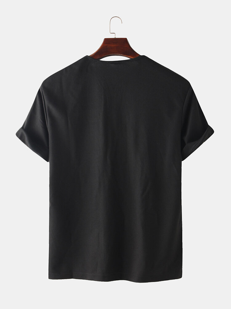 Mens Dsigner V-Neck Breathable Short Sleeve Casual T-Shirts – Black S