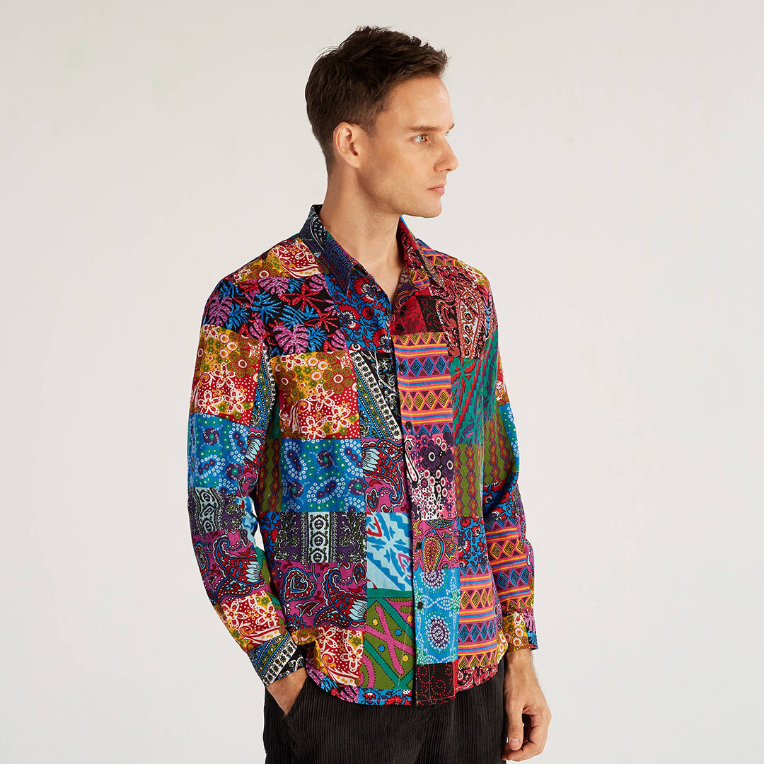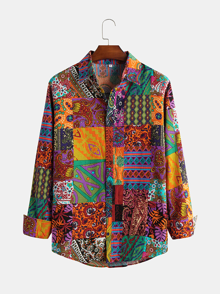 Mens Ethnic Autumn Colorful Printing Long Sleeve Shirts – 2XL As Picture