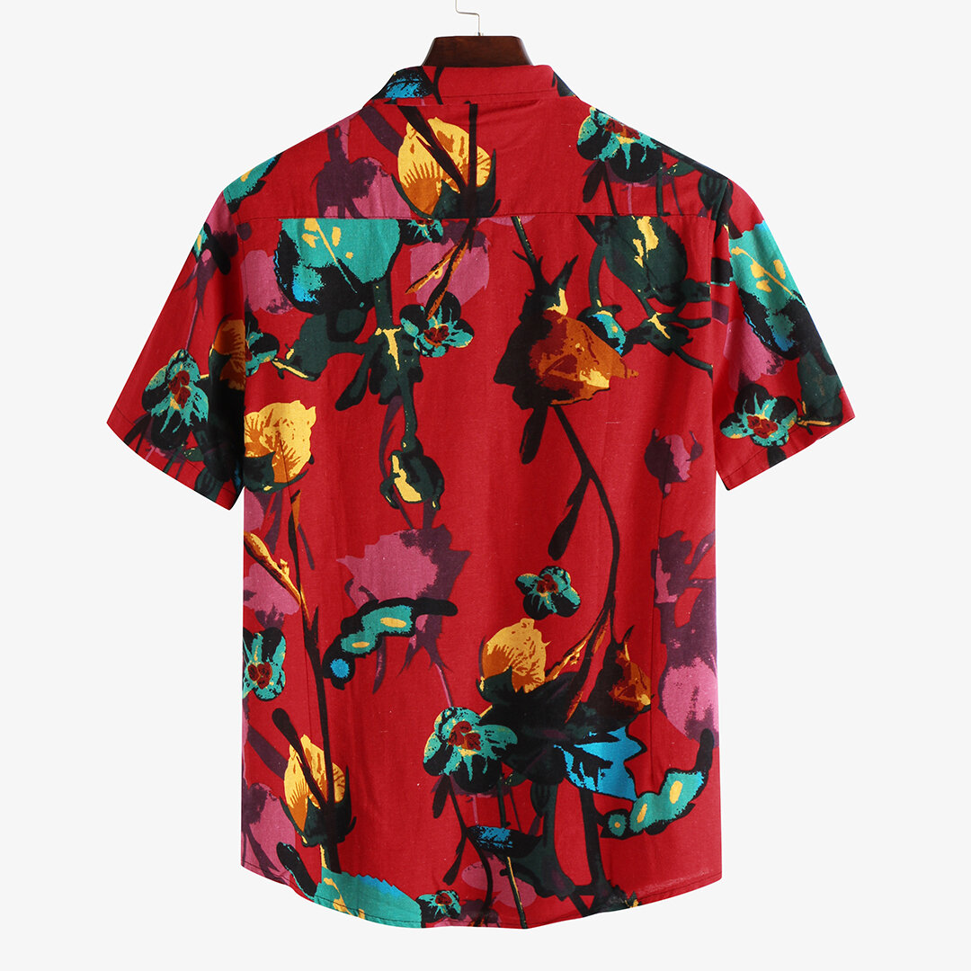 Item Type: Shirts Pattern Type: PrintedGender: Men Fit Type: FitStyle: Casual, Fashion Thickness: RegularCollar: Turn Down Collar Season: Spring, SummerMaterial: Cotton Fabric Sleeve Length: Short SleeveColor: RedCuff Type: Shirt Sleeves Occasion: Leisure Package includes