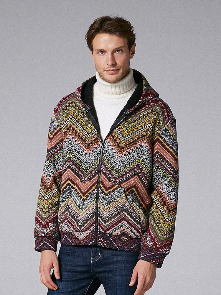 Mens Ethnic Printing Hooded Overhead Long Sleeve Sweatshirt – M Blue