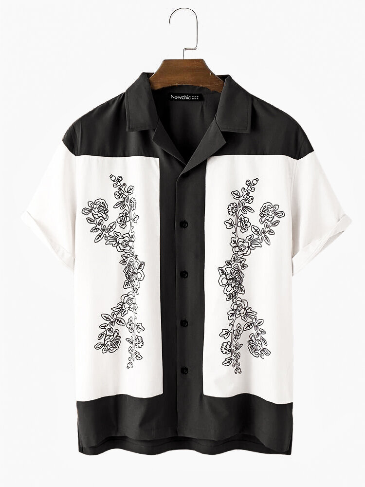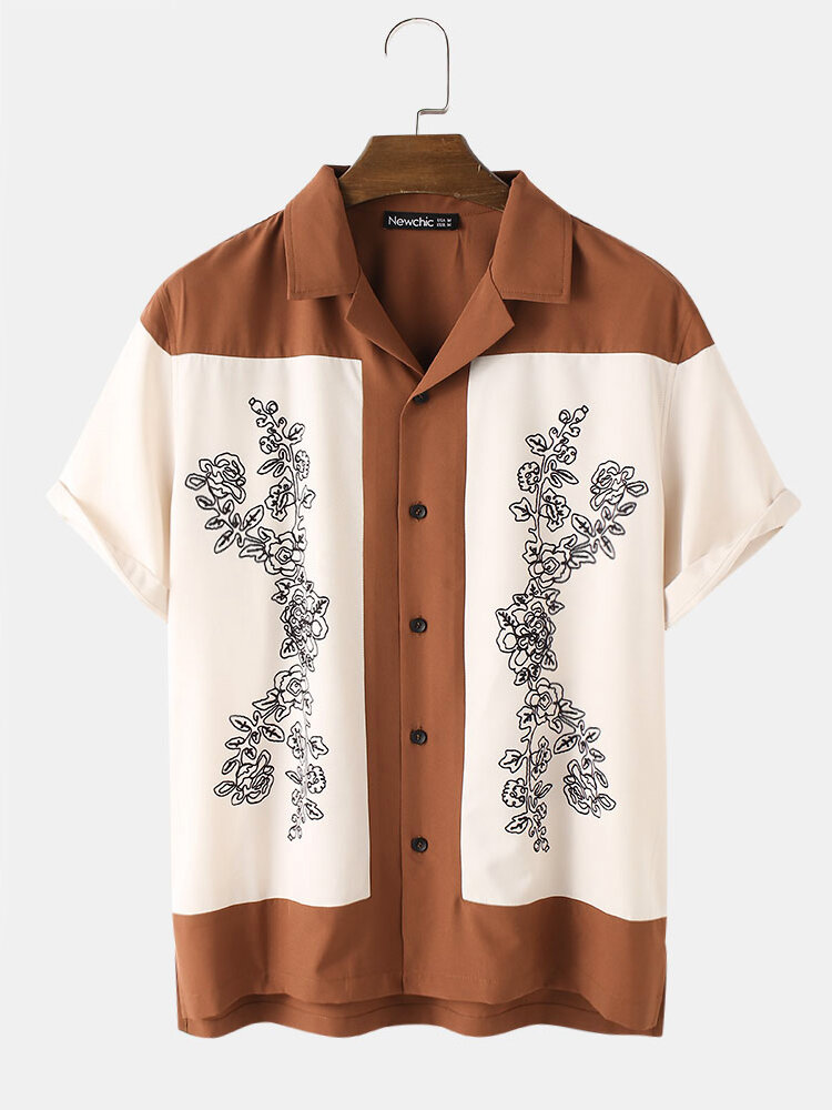 Brand:ChArmkpRDecoration:FlowersFit Type:Regular FitMaterial: 5% Spandex,95% PolyesterNeckline:Revere CollarPattern Type:Color BlockScene:Leisure,Home,CasualSeason:SummerSize:XXL,L,S,XL,MSleeve:Short SleeveStyle:Vintage,CasualThickness:Regular