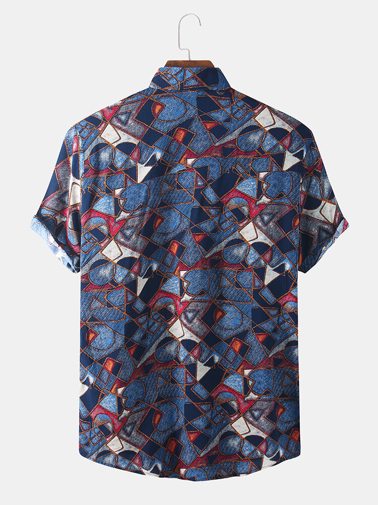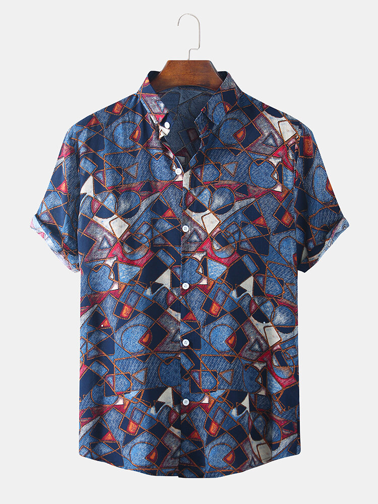 Description:Item Type: ShirtsPattern Type: PrintingGender: MenFit Type: FitStyle: Casual,FashionThickness: RegularCollar: Turn Down CollarSeason: SummerDecorations: PocketMaterial: PolyesterSleeve Length: Short SleeveColor: Blue,RedCuff Type: Shirt SleeveOccasion: Leisure,Home,Daylife