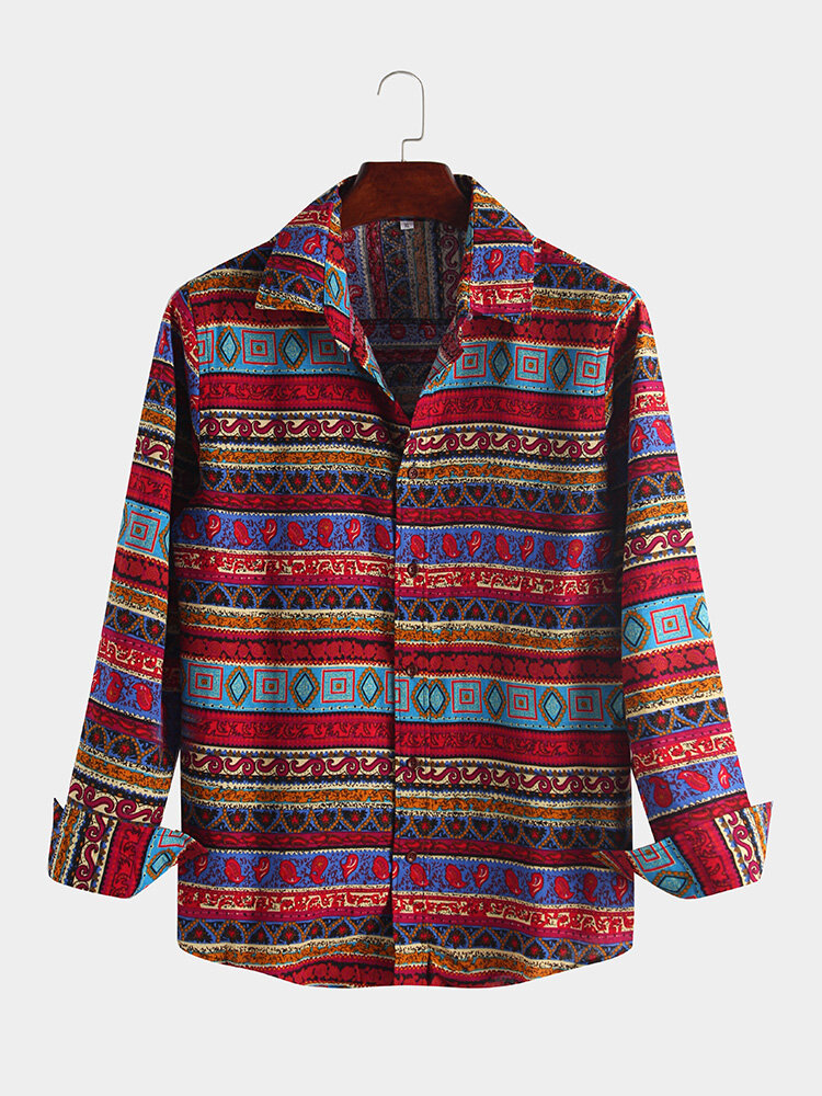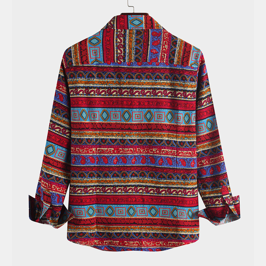 Mens Ethnic Style Long Sleeve Shirt – S As Picture