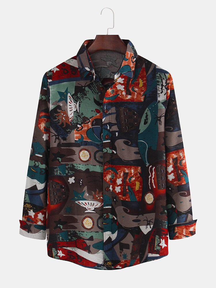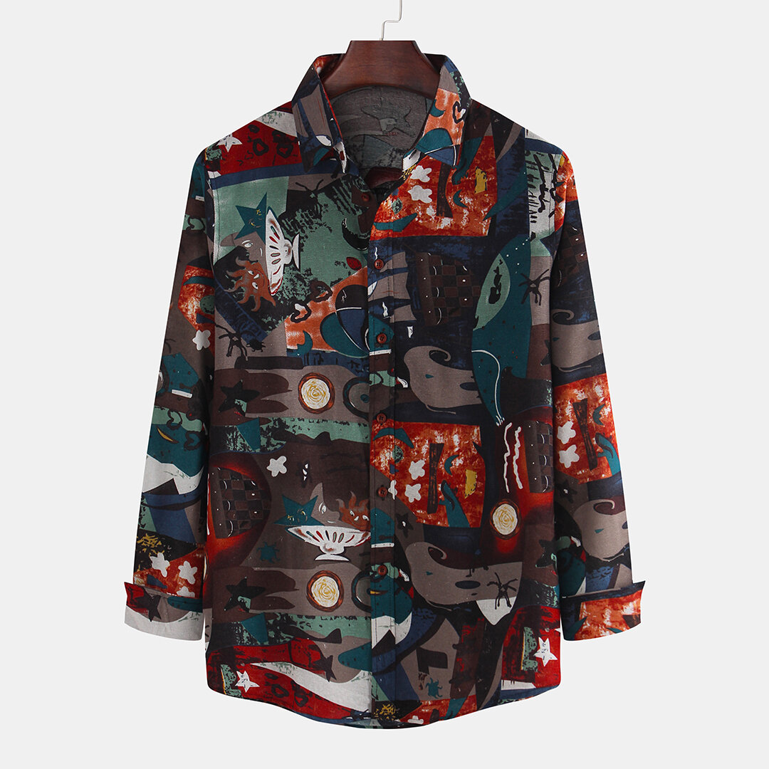 Mens Ethnic Style Multi Printing Long Sleeve Casual Shirts – 2XL #1