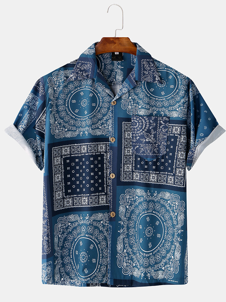 Mens Ethnic Style Printing Short Sleeve Shirts – S Brown