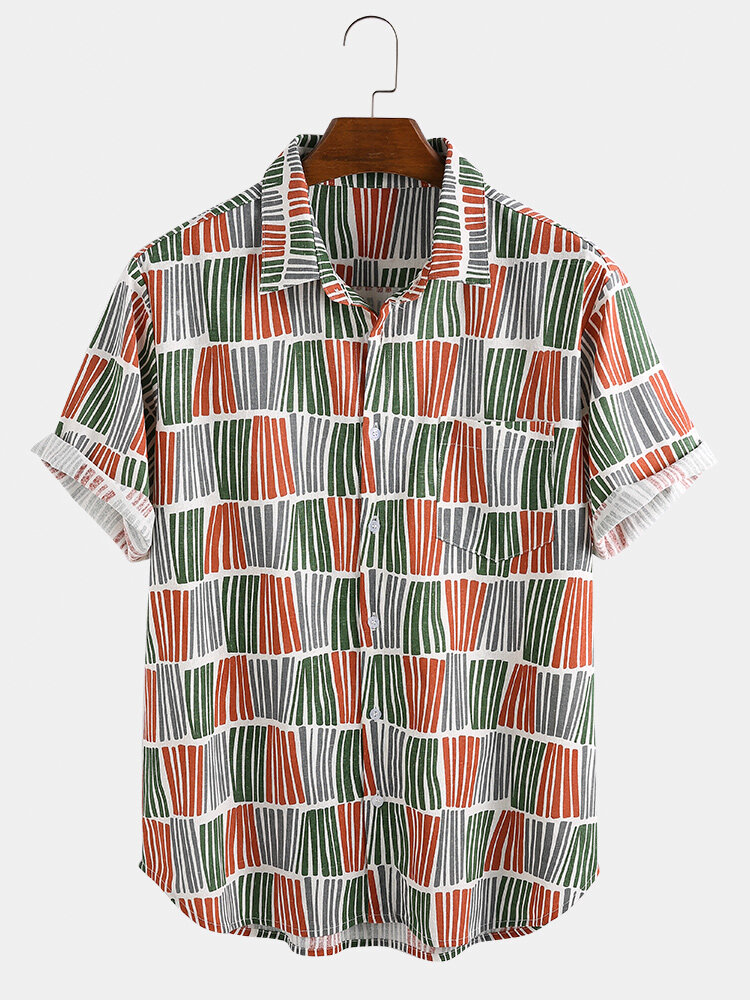 Item Type: ShirtsPattern Type: PrintingGender: Men Fit Type: FitStyle: Casual,Fashion Thickness: RegularCollar: Turn Down CollarSeason: SummerDecorations: PocketMaterial: Linen,Cotton and PolyesterSleeve Length: Short SleeveColor: Blue,Yellow,GreenCuff Type: Shirt Sleeve Occasion: Leisure,Home,Daylife Package includes