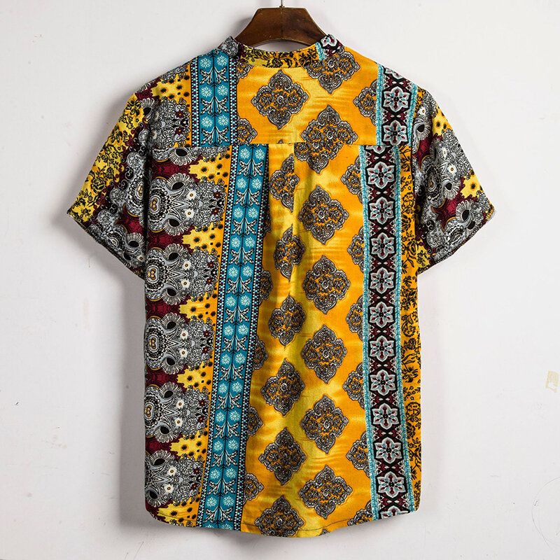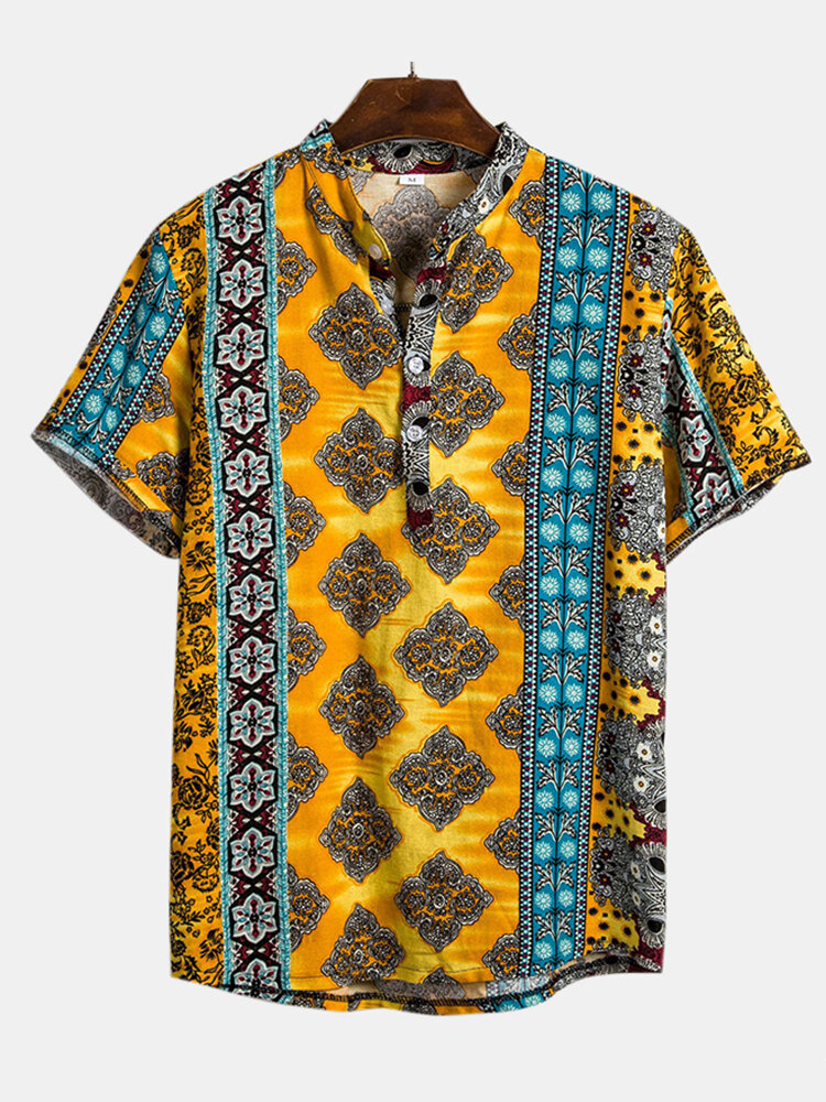 Mens Ethnic Summer Colorful Printed Henley Shirts – M Yellow