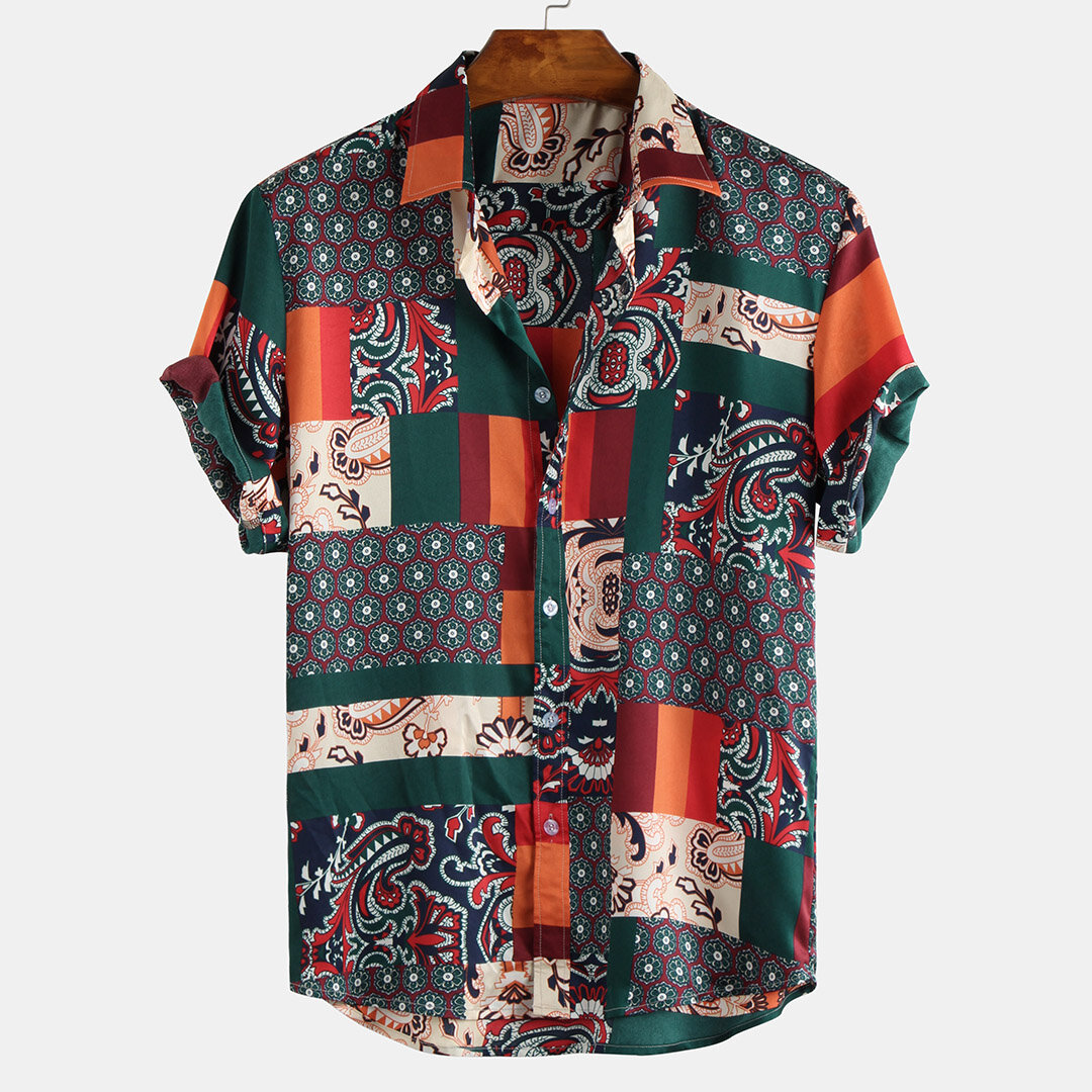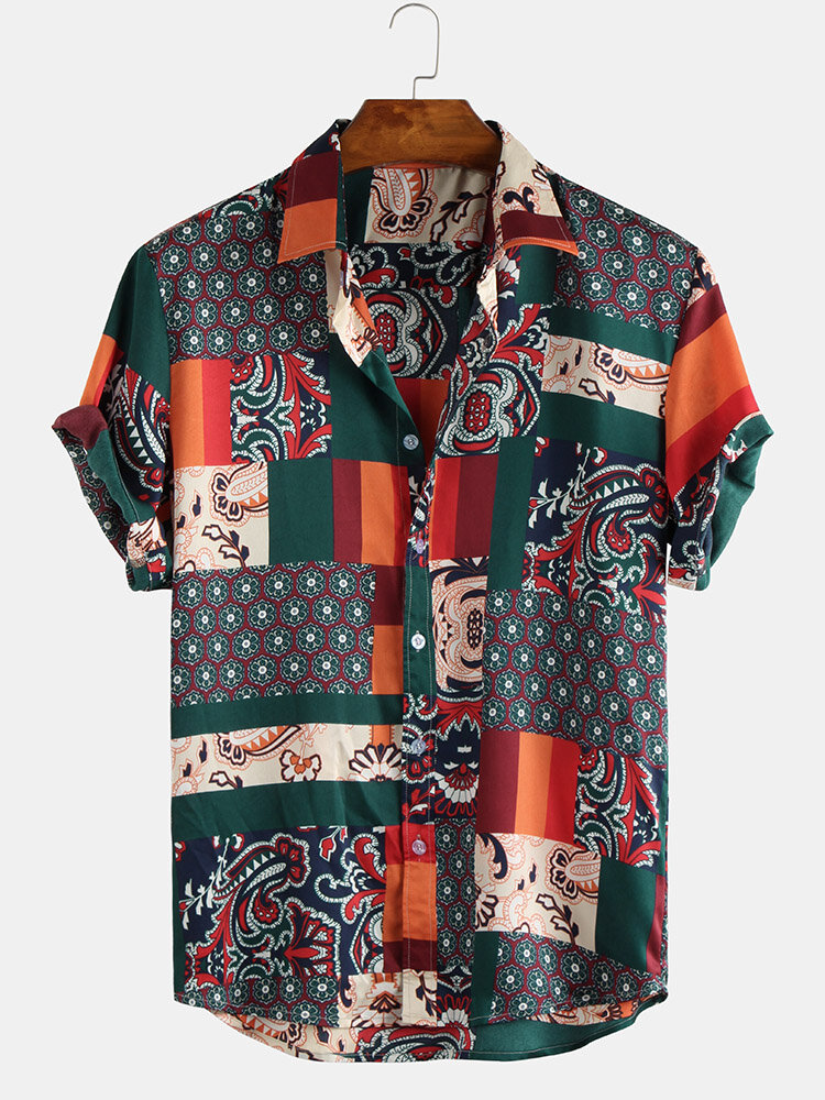 Mens Fahion Colorful Paisly Printed Ethnic Loose Shirts – XL Green