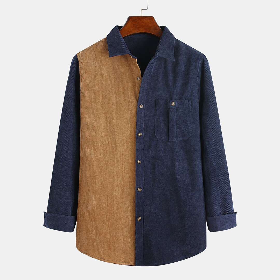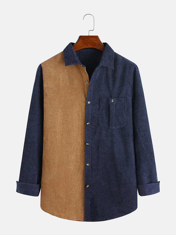 Item Type: Shirts Pattern Type: Patchwork Gender: Men Fit Type: FitStyle: Casual,Fashion Thickness: RegularCollar: Turn Down Collar Season: Spring, AutumnDecorations:Buttons PocketMaterial: Polyester,CorduroySleeve Length: Long SleeveColor: Green,Royal BlueCuff Type: Shirt Sleeve Occasion: Leisure,Home,Daylife Package includes