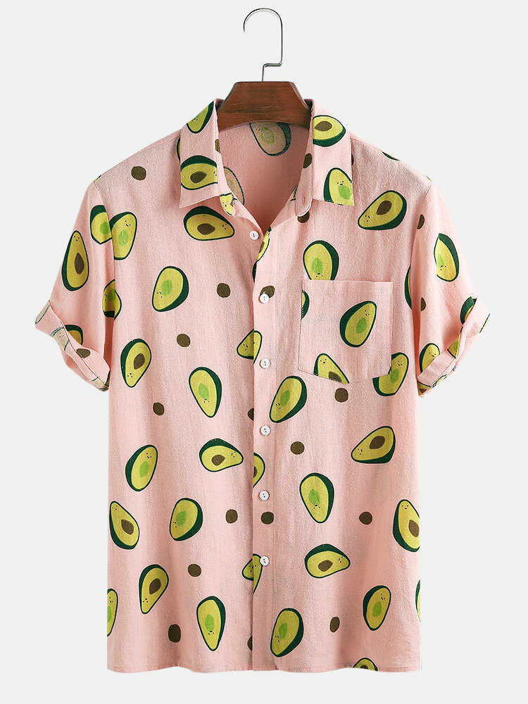 Brand:ChArmkpRDecoration:Pocket,ButtonFit Type:Regular FitMaterial:PolyesterNeckline:LapelPattern Type:Fruit&VegetableScene:Leisure,CasualSeason:Spring,SummerSize:XXXL,XXL,L,XL,MSleeve:Short SleeveStyle:CasualThickness:Regular