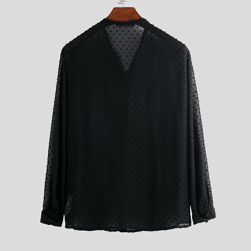 Mens Fashion Breathable Long Sleeve Solid Color Casual Shirts – 3XL Black