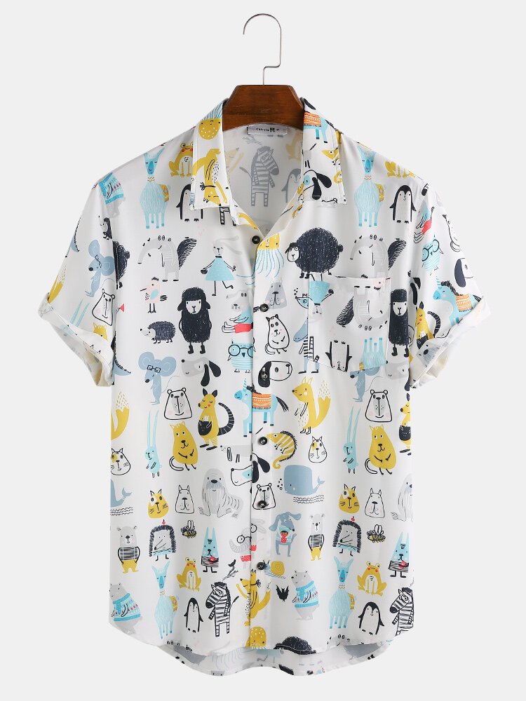 Brand:ChArmkpRDecoration:PocketFit Type:Regular FitMaterial:PolyesterNeckline:LapelPattern Type:Animal,CartoonScene:Leisure,Home,CasualSeason:Spring,SummerSize:XXXL,XXL,L,XL,MSleeve:Short SleeveStyle:Casual,Cartoon