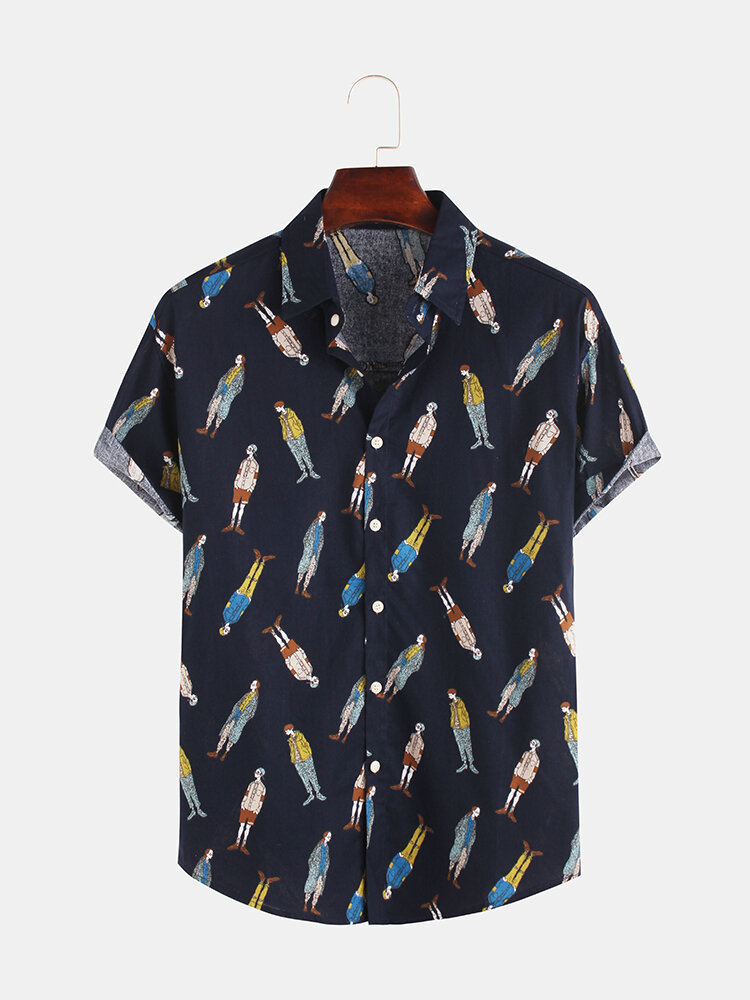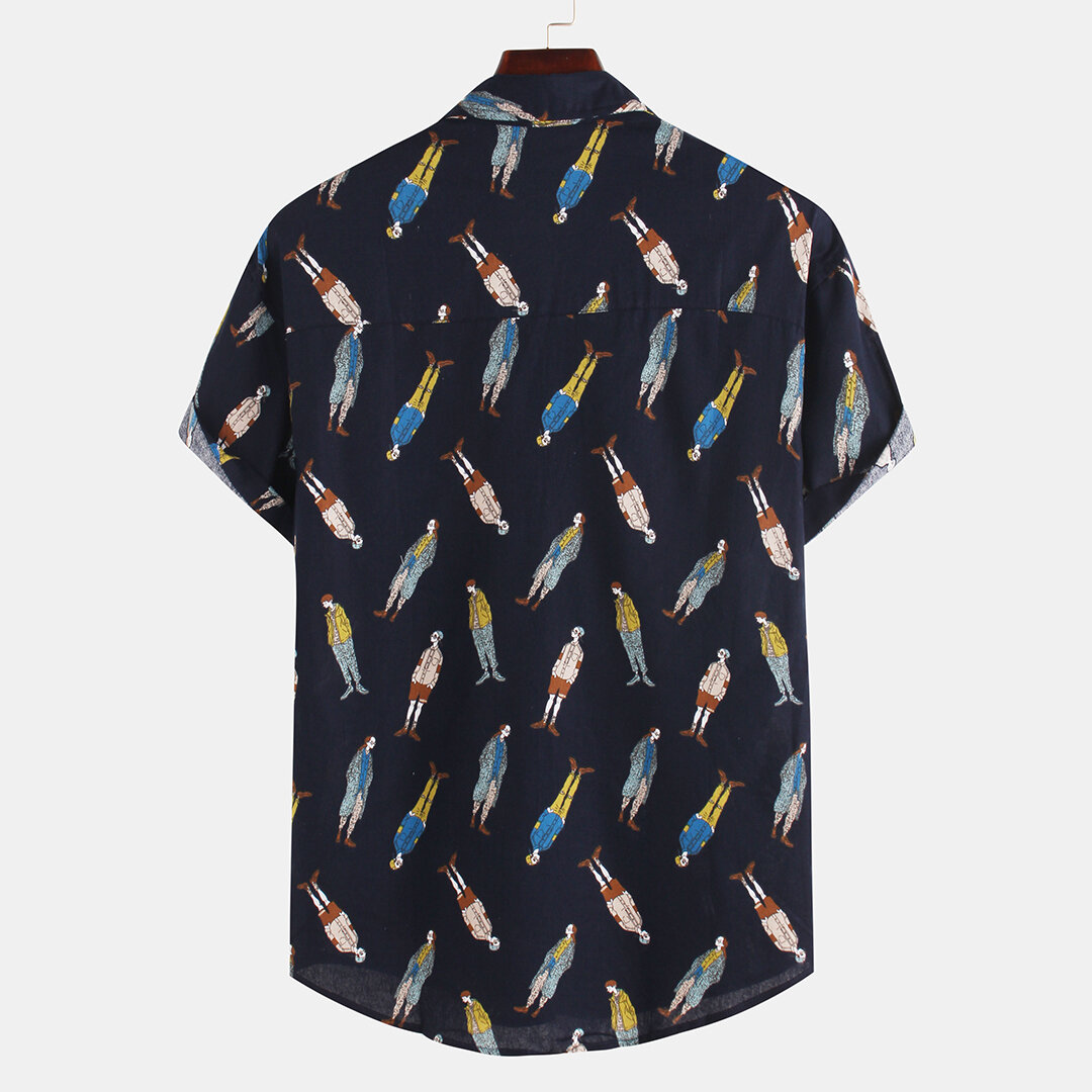 Mens Fashion Character Printing Turn Down Collar Shirts – S Navy