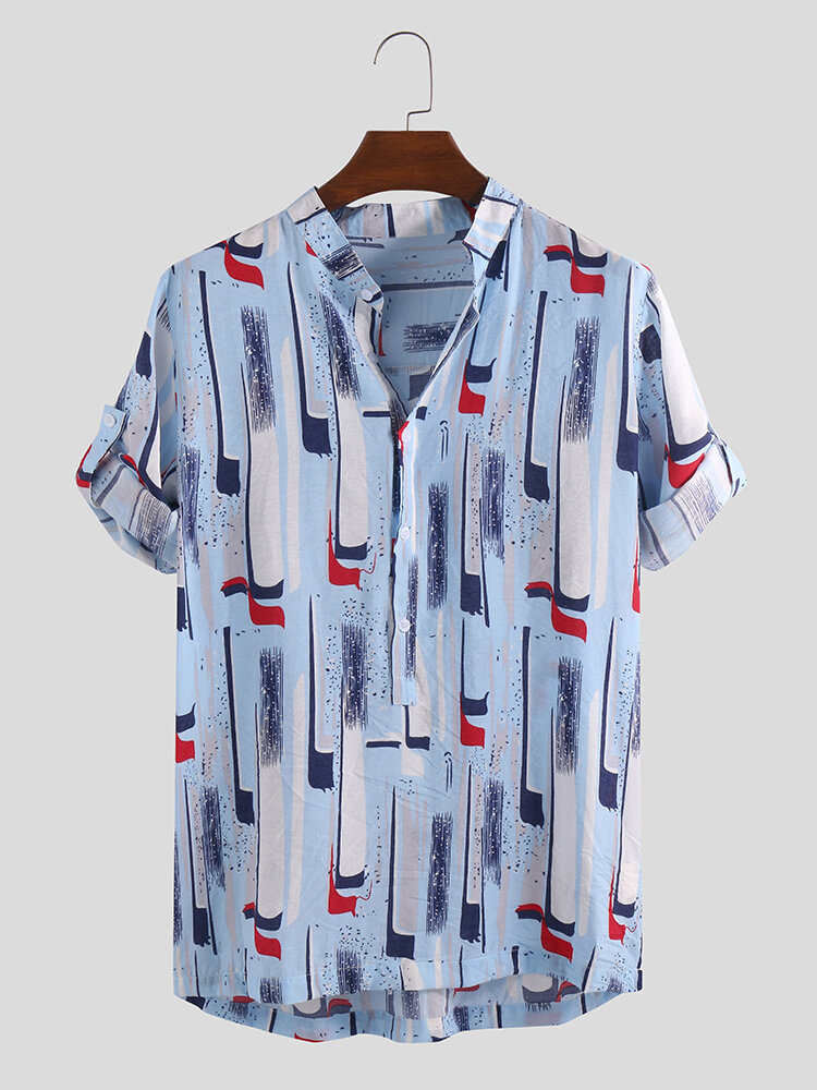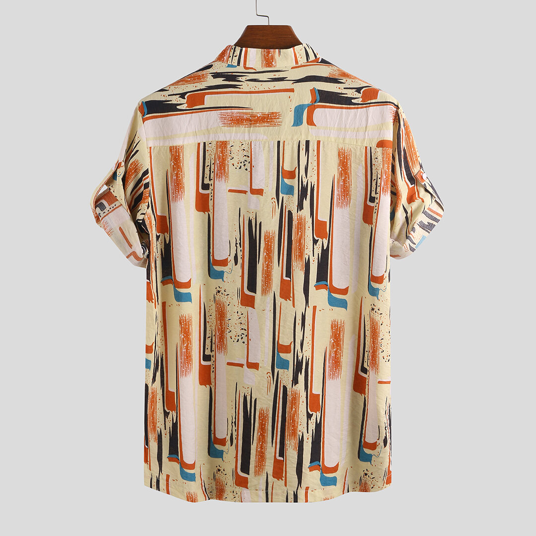 Item Type: Shirts Pattern Type:Printed Gender: Men Fit Type: FitStyle: Casual, Fashion Thickness: RegularCollar: Stand Collar Season: Spring,SummerMaterial:80% Rayon 20% Polyamide Sleeve Length: Short SleeveColor: Yellow,BlueCuff Type: Shirt Sleeves Occasion: Leisure