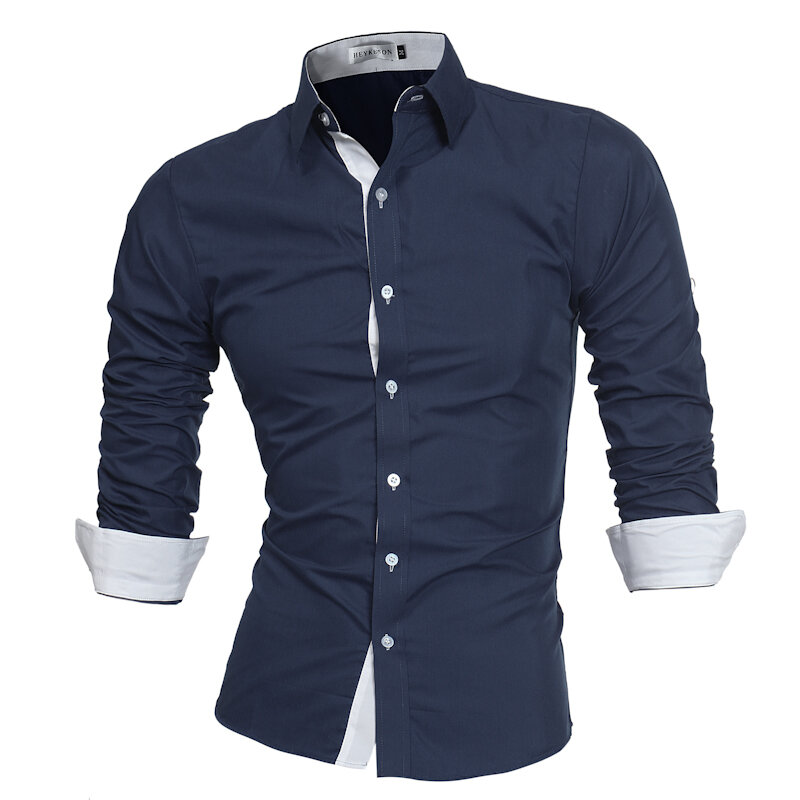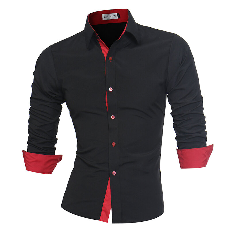Brand Name: NoSleeve Length: Long SleeveItem Type: ShirtsPattern Type: Solid ColorGender: MenFit Type: SlimStyle: Casual, FashionThickness: RegularCollar: Turn-down CollarSeason: Spring, AutumnMaterial: Cotton, PolyesterColor: Black, White, Navy, Royal Blue, Black RedCuff Type: Shirt SleevesOccasion: Leisure