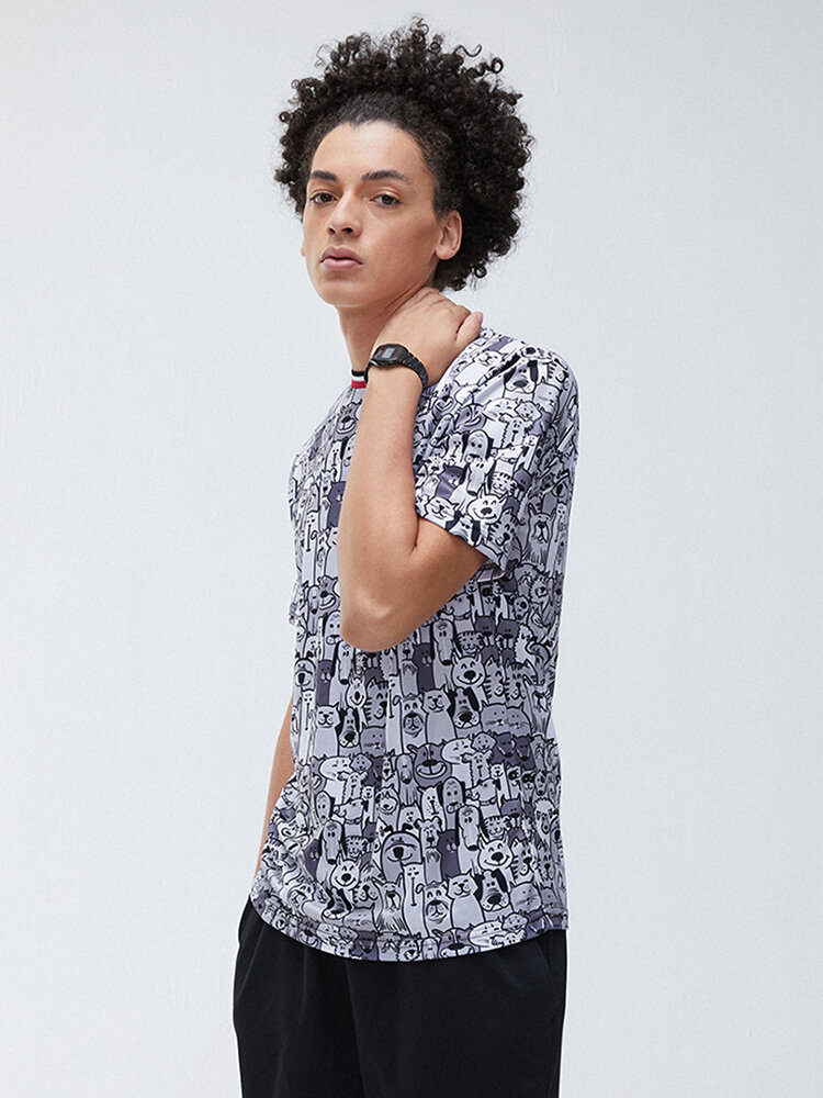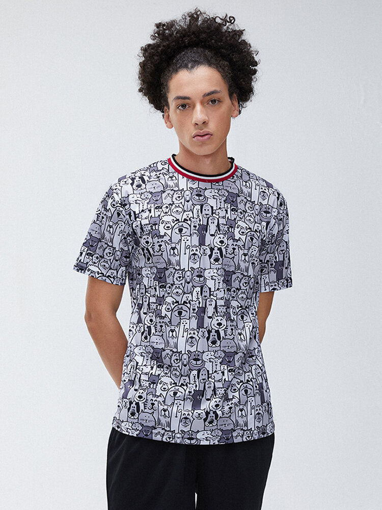 Mens Fashion Crew Neck Carton Printing Short Sleeve Casual T-Shirts – L As Picture