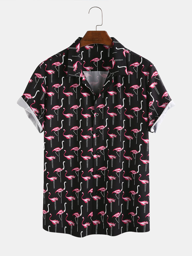 Description:Item Type: ShirtsPattern Type: PrintingGender: MenFit Type: FitStyle: Casual,FashionThickness: RegularCollar: Turn Down CollarSeason: SummerDecorations: AnimalMaterial: 100% PolyesterSleeve Length: Short SleeveColor: BlackCuff Type: Shirt SleeveOccasion: Leisure,Home,Daylife