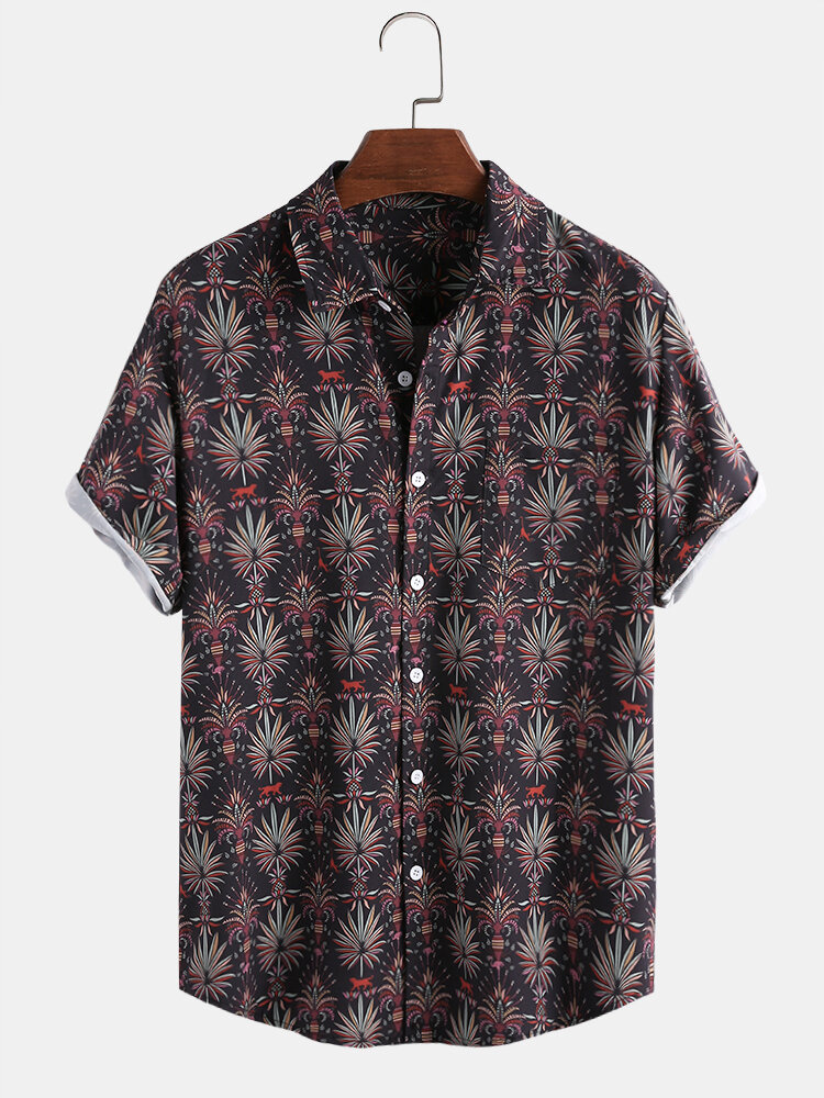 Brand:ChArmkpRClosure Type:Single BreastedCollar:Turn-down CollarColor:BlackCrafts:PrintingCuff Type:Shirt SleevesDecoration:PatternFit Type:FitLength:RegularMaterial:PolyesterOccasion:Casual,Home,LeisurePattern:FloralSeason:Spring,SummerSize:2XL,3XL,L,M,XLSleeve Length:Short SleeveStyle:Casual,Fashion,LeisureThickness:Regular