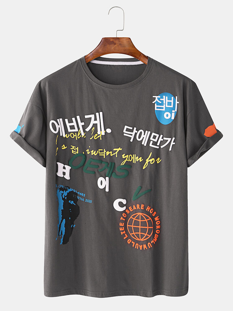 Collar:Crew NeckColor:Beige,Black,Blue,Dark Grey,Light GrayFit Type:FitLength:RegularMaterial:CottonPattern:CharacterSeason:Spring,SummerSize:2XL,L,M,XLSleeve Length:Short SleeveStyle:Casual,Home,Leisure