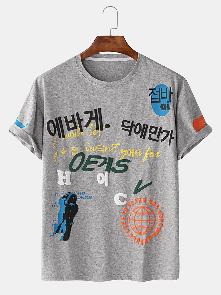 Mens Fashion Funny Pattern Printing Breathable Short Sleeve Casual T-Shirts – Grey M