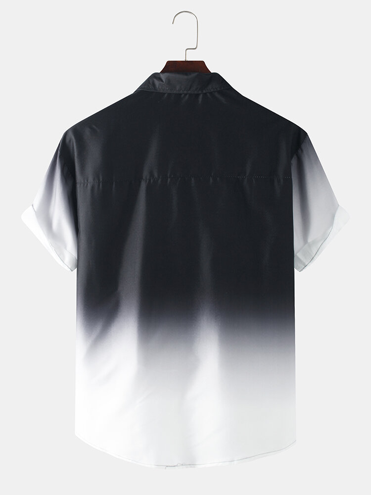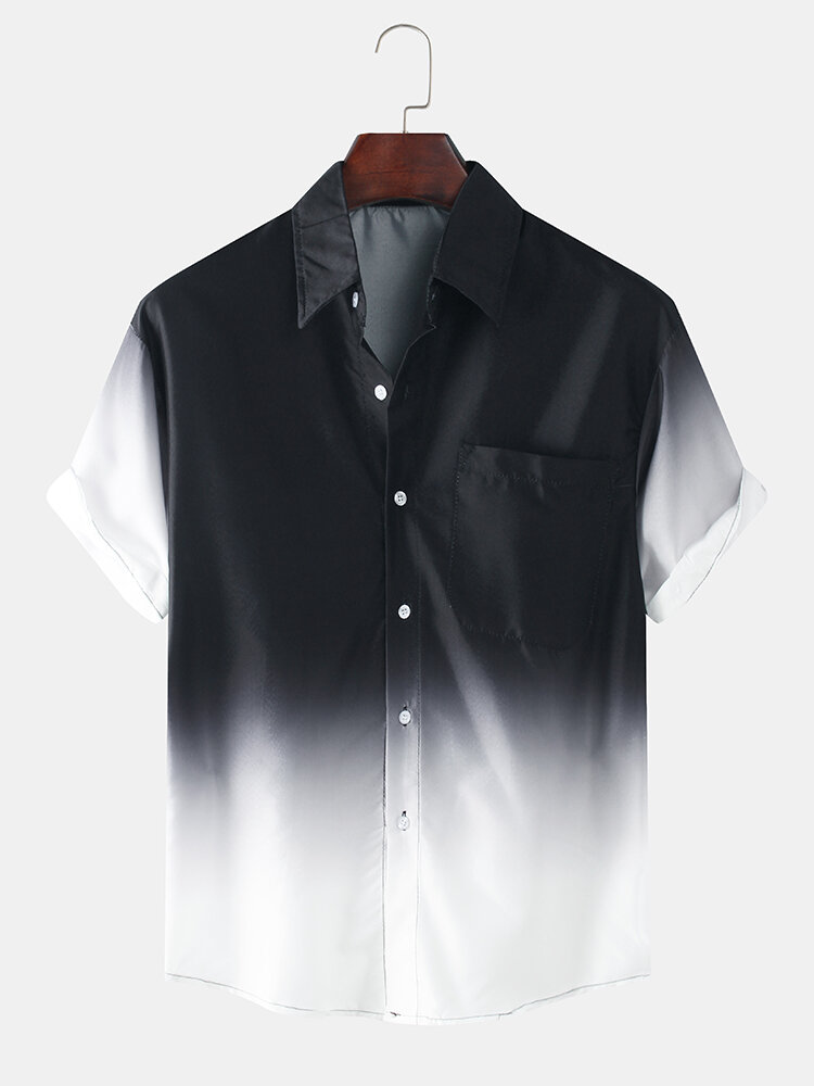 Mens Fashion Gradient Color Breathable Pocket Casual Shirts – Black L