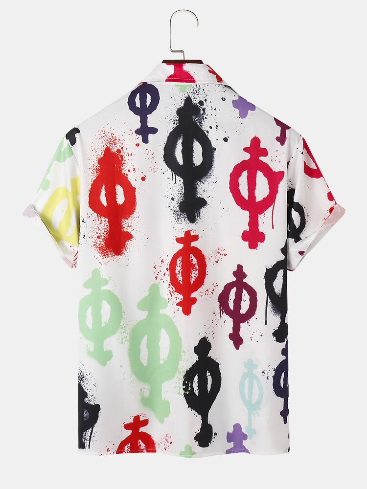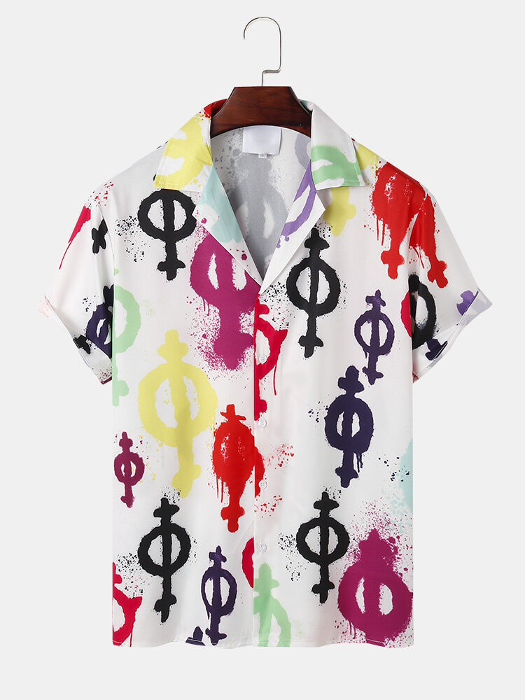 Mens Fashion Graffiti Pattern Casual Shirts – White S