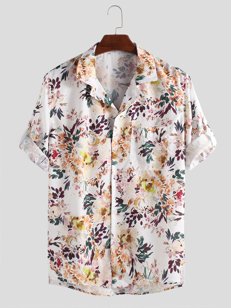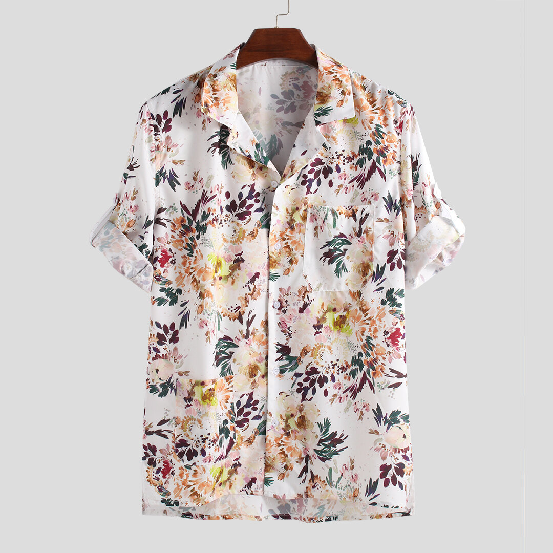 Item Type: Shirts Pattern Type: Floral PrintedGender: Men Fit Type: FitStyle: Casual, Fashion Thickness: RegularCollar: Turn Down Collar Season: Spring, SummerMaterial: 100% Polyester Sleeve Length: Half SleeveColor: Blue,YellowCuff Type: Shirt Sleeves Occasion: Leisure Package includes
