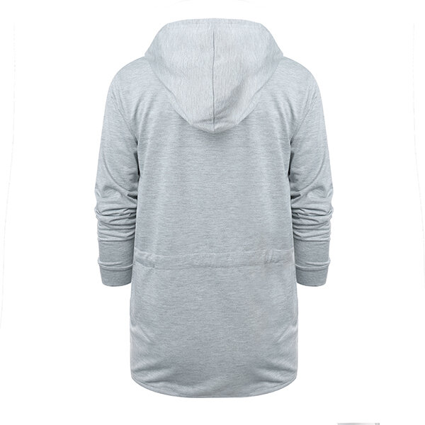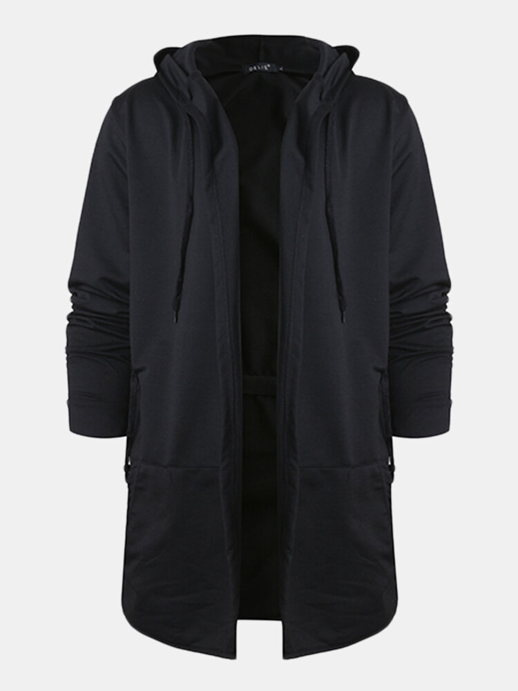 Mens Fashion Hip-Hop Solid Color Drawstring Casual Mid-long Hoodies Sweatshirts – M Grey