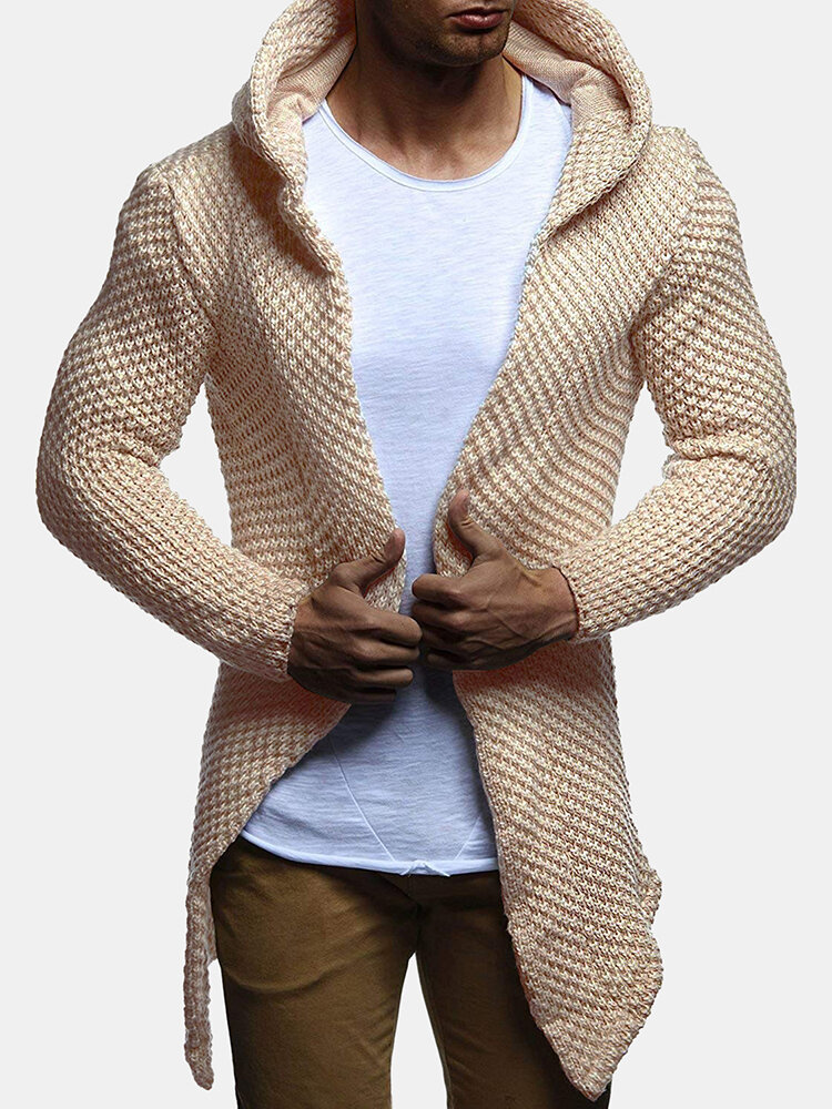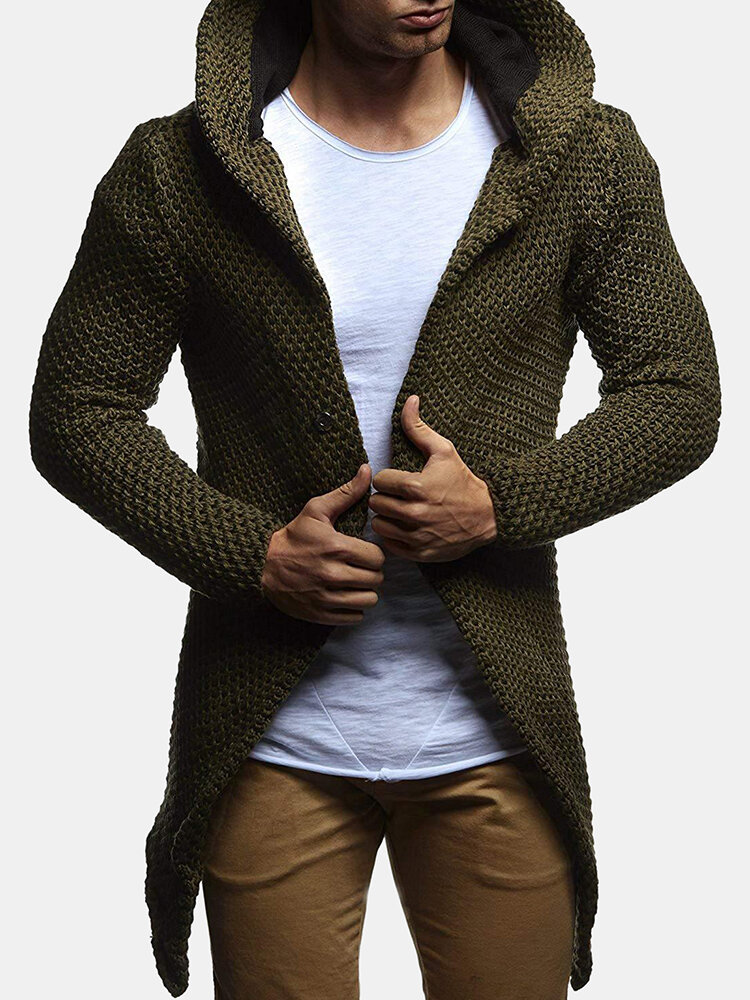 Men’s Fashion Hooded cardigan sweaters coat sweater Mid-long knitting Hoodies – L Black