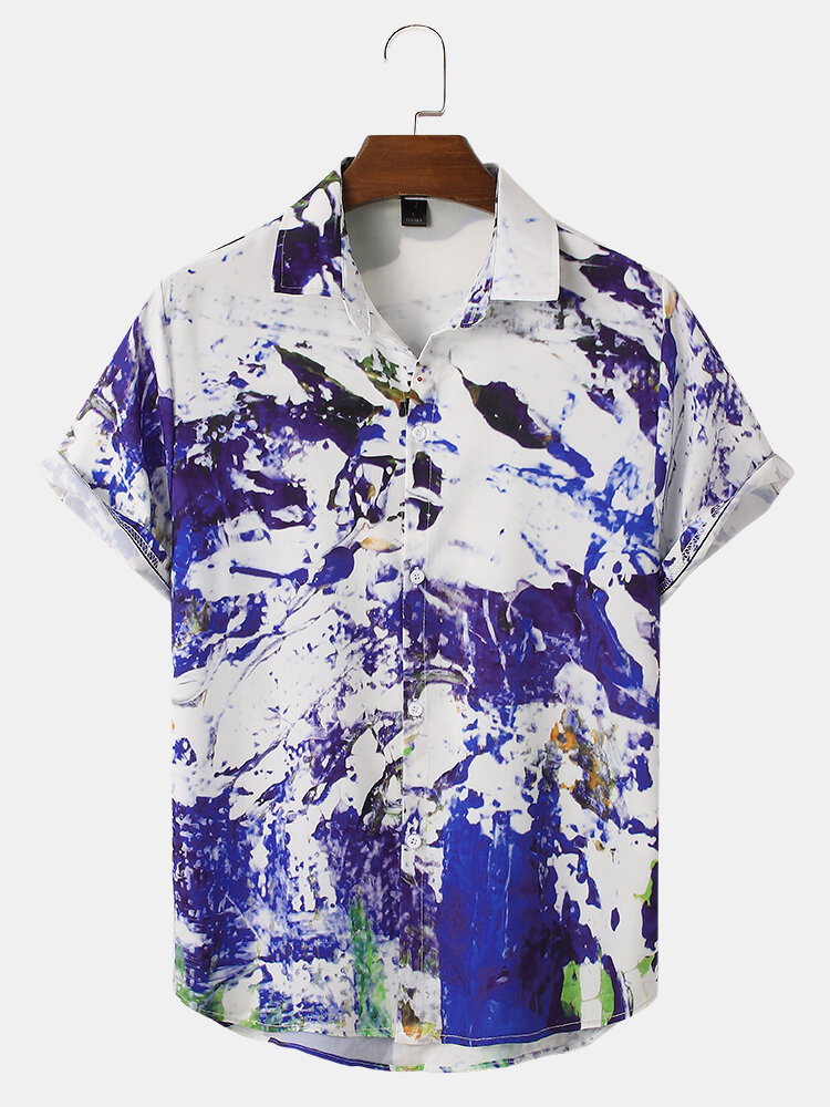 Decoration:Button,PatternFit Type:Regular FitMaterial:PolyesterNeckline:LapelPattern Type:LandscapeScene:Leisure,Home,CasualSeason:SummerSize:M,XXL,L,S,XLSleeve:Short SleeveStyle:CasualThickness:Regular