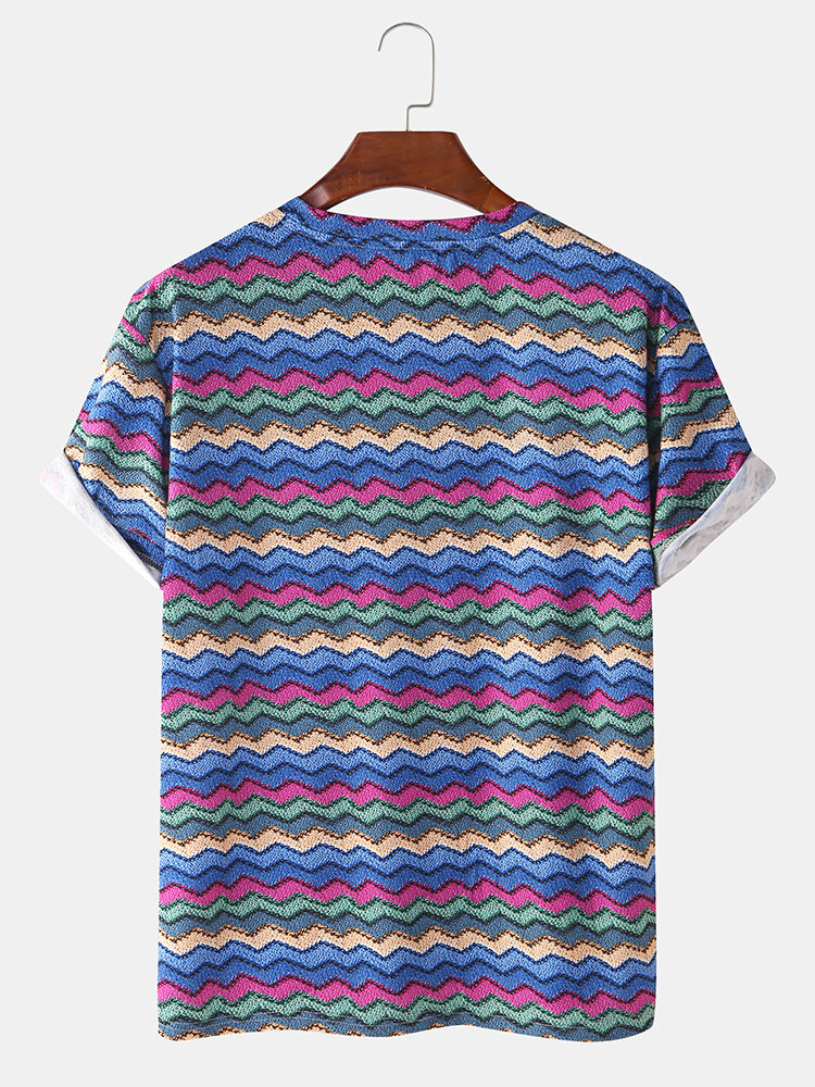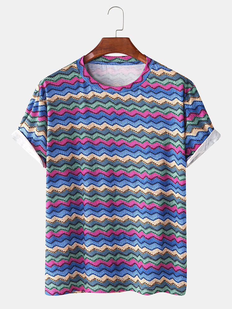 Description:Item Type: T-ShirtsPattern Type: StripeGender: MenFit Type: FitStyle: Casual,FashionThickness: RegularCollar: Crew NeckSeason: SummerDecorations: PatternMaterial: 100% PolyesterSleeve Length: Short SleeveColor: BlueCuff Type: Shirt SleeveOccasion: Leisure,Home,Daylife
